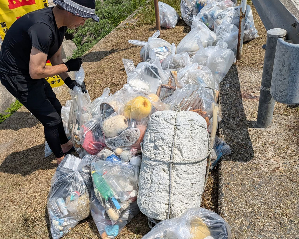 人手が多くなったので、オレモオメモチームは川沿いを、集落チームはそれより北側を担当してゴミを収集。1時間弱で、目立つゴミを概ね拾うことができました。