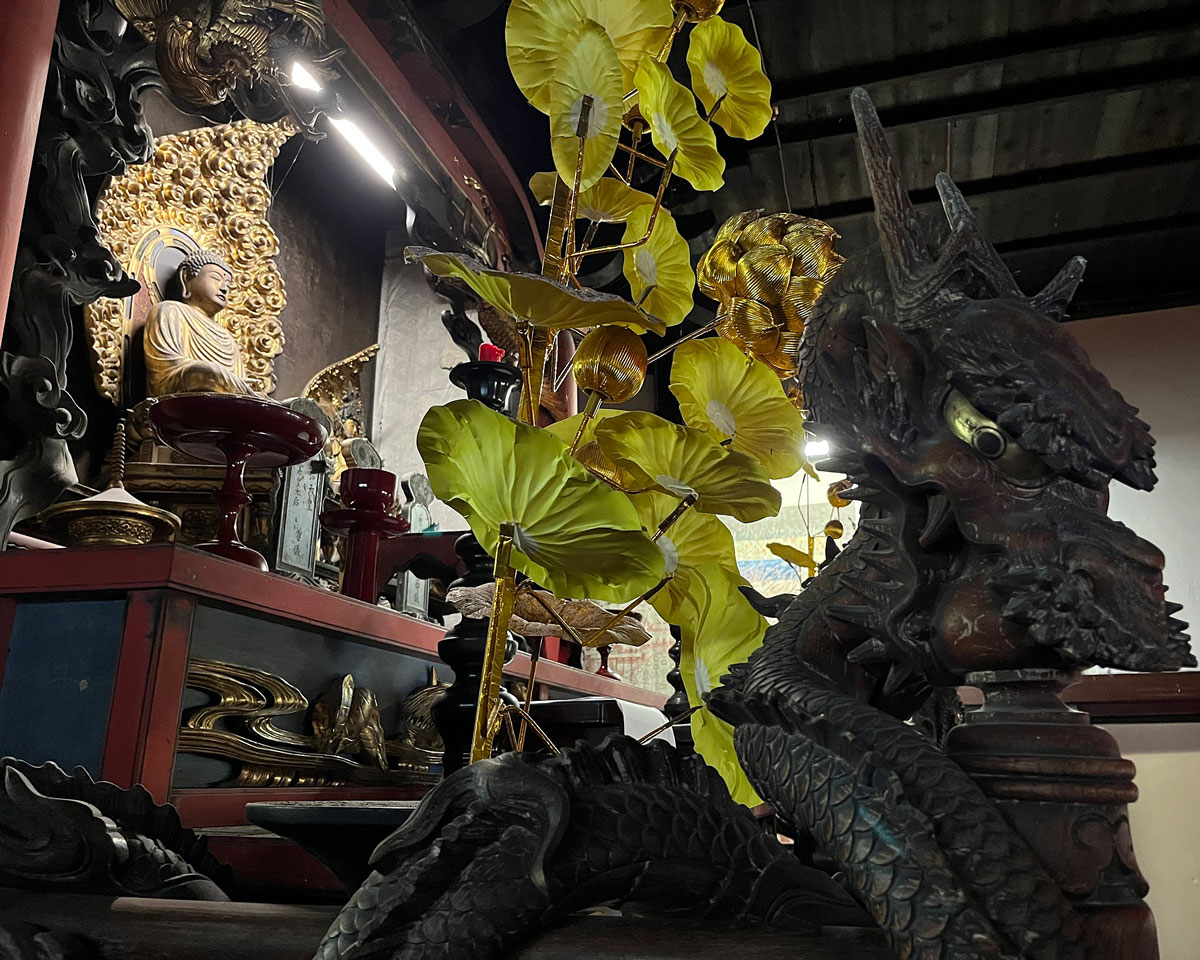 長門屋次郎左衛門の力は絶大で、お寺や神社に多くの寄進を行い、上海府内でも一際立派な彫刻を残し、石像物等にもその名を見ることが出来ます。