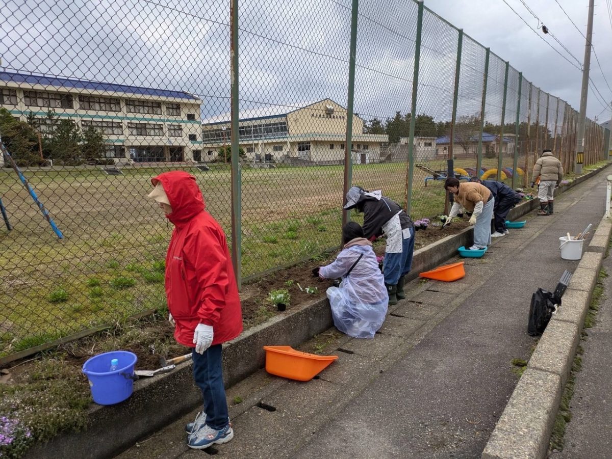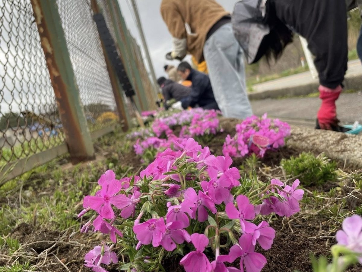昨年完成させたにもかかわらず夏の猛暑で半分以上枯れてしまったルンルンロードを元に戻すため、4月11日(土)に補修作業を行いました。