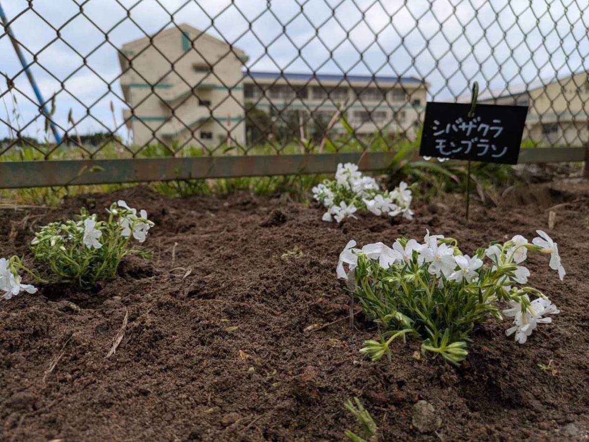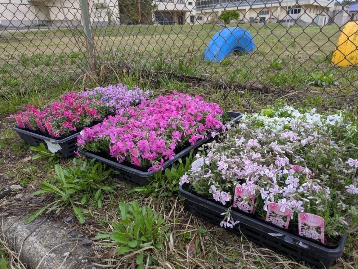 助っ人がお手製ネームプレートまで用意してきてもらったので、皆で芝桜の名前を書いて、揺れるネームプレートがオシャレな花壇に変身✨
